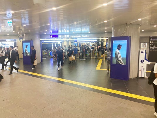新幹線中央改札(3階)を出て下りエスレーターで2階へ降りると目の前。地下鉄御堂筋線の改札口へもすぐ。